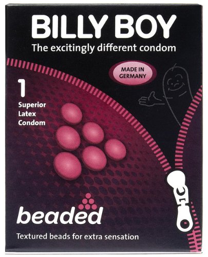 BILLY BOY Beaded gives your partner yet another reason to desire you in bed. Features more than 576 raised micro-dots. Beads enhance stimulation for your partner giving you a performance advantage. Extra lubrication and all-natural superior latex ensure reliability and comfort.