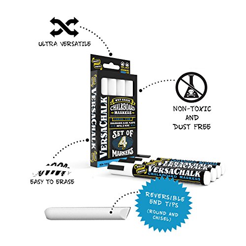 Liquid Chalk Markers vs Ordinary Chalk _ Brighter Lines Chalk pens draw smoother, brighter lines which avoid the same pale streaks from traditional chalk _ Write on ANYTHING Draw on any non-porous surface including glass windows, plastic containers, metal serving platters, faux-wood veneer, or even your refrigerator! _ No Messy Chalk Dust Liquid chalk ink is dustless, so it's perfect for those sensitive to dust particles, with allergies, with asthma, or anyone tired of breathing in chalk dust! The Premier Brand of Chalk Markers for Professionals High Quality Markers that are dust-free, easy to erase that allows them to create crispier lines and more detailed designs. Lasts longer, no need to worry about accidental smudging/erasures that would need them to re-do the artwork. Gives off the handmade and personal feel that the regular chalk has while maintaining a clean and polished look.Feature