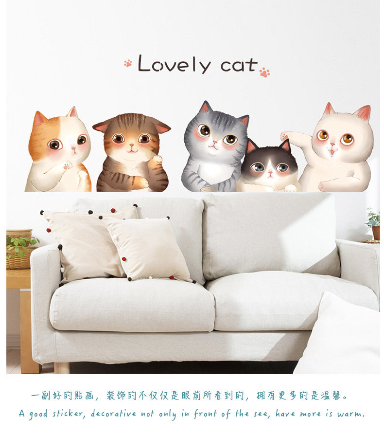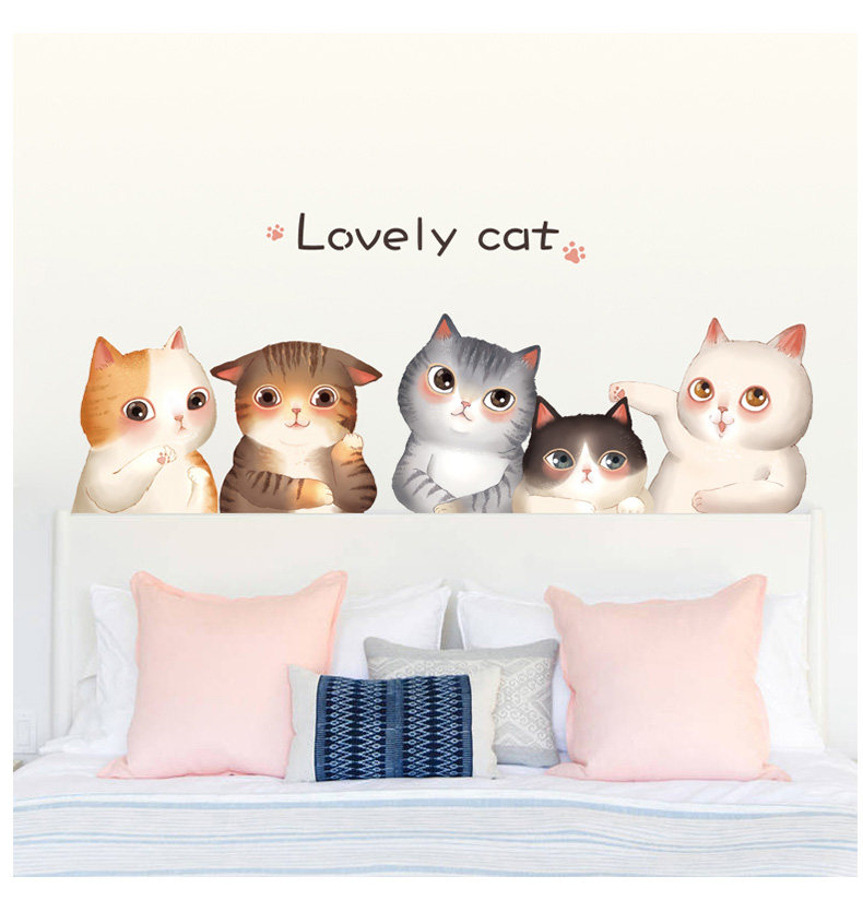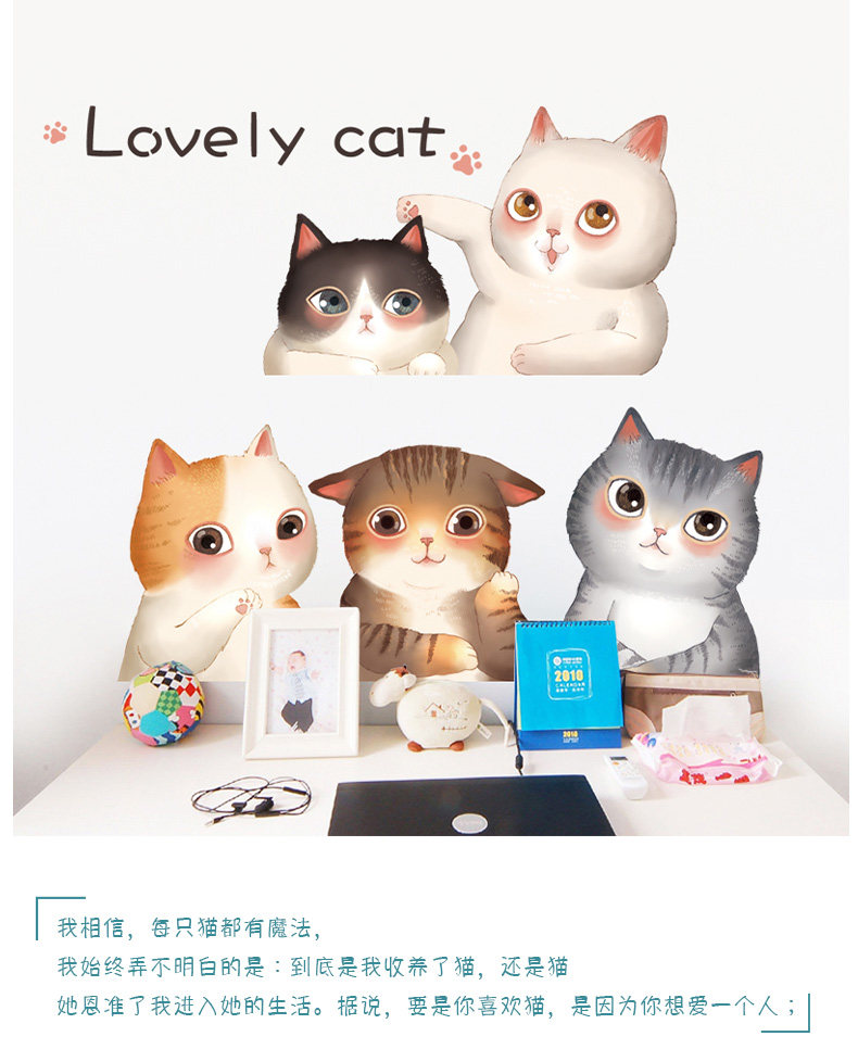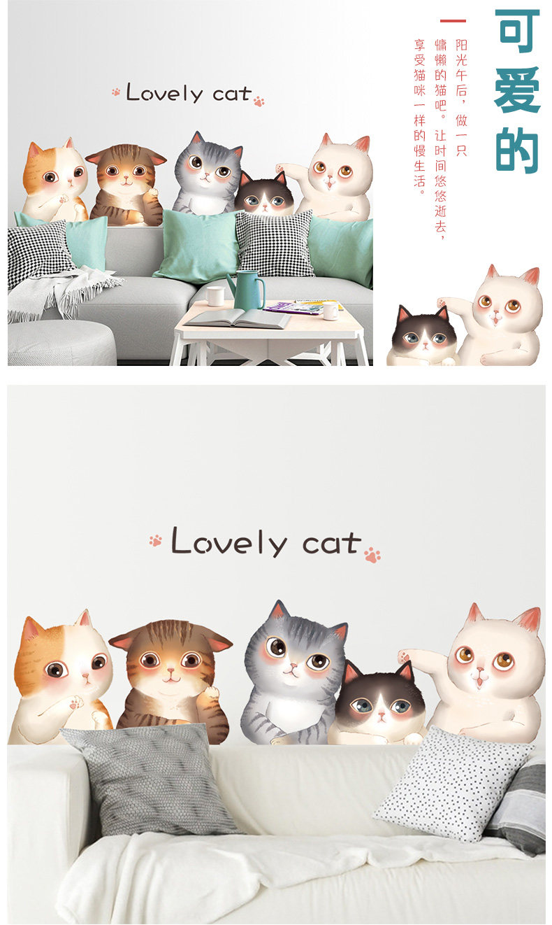 小猫咪墙壁贴纸卧室房间床头温馨装饰品墙贴宿舍墙面自粘墙纸贴画