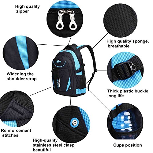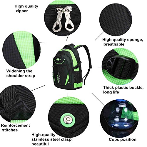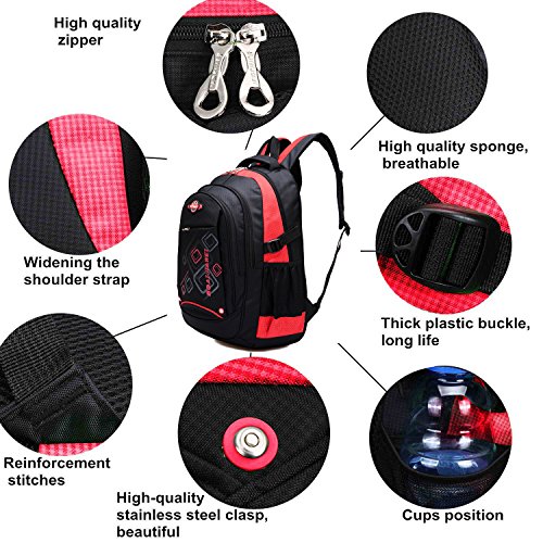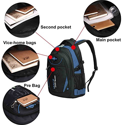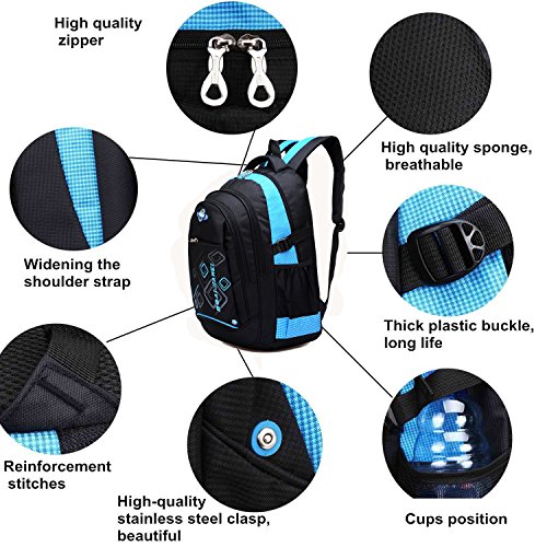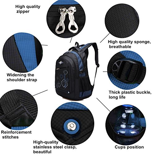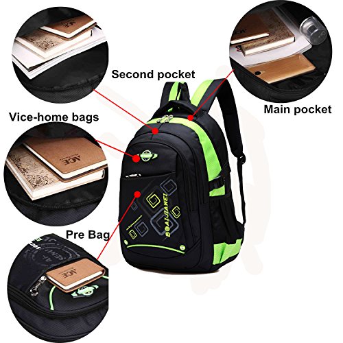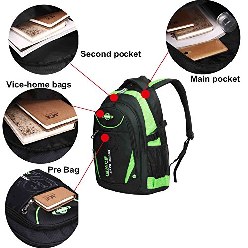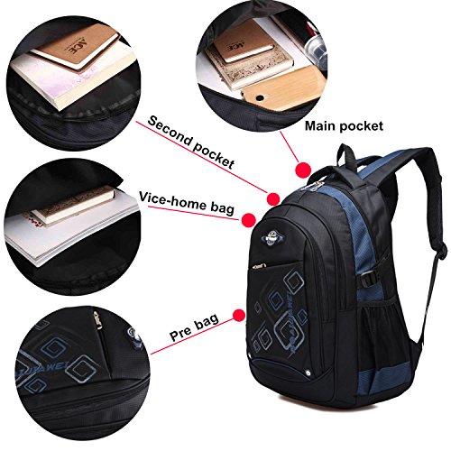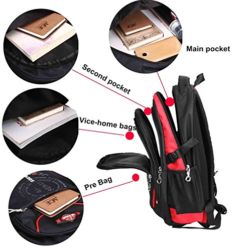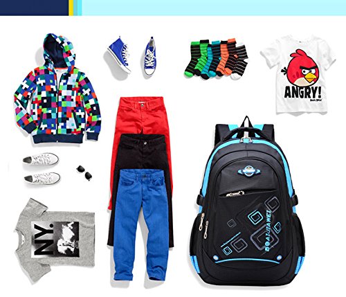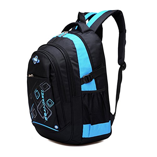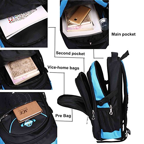 Product Description Features: - High quality Material. Light weight and breathable. - Imported precision waterproof fabrics can effectively protect the books and other items not to wet in the backpack. - Padded thicken and adjustable shoulder straps, protection the spine bone, prevent bow-backed, correct sloping shoulders. - Compressive strength of PVC handle, high grade metal zipper, made the backpack durable and practical. - Large capacity and storage space, multilayer design, easy to sort out, wear-resisting, anti-wrinkle, waterproof and easy to clean up. - The backpack has main pocket, second pocket, vice-home bag , prep bag and 2 side mesh pockets, enough space to carry items for daily use. - Perfect for primary and middle school students daily use, camping, hiking, travel school, etc.