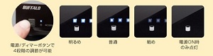 ???本体前面の「電源/ディマーボタン」で、残量メーターの明るさを4段階で切り替えられます。明るい場所でも暗い場所でも、お好みに合わせて表示できます。
