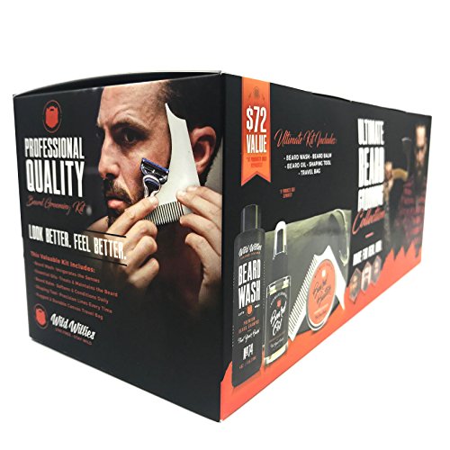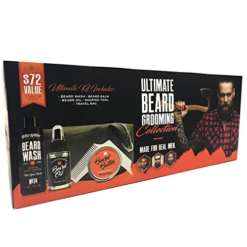 Ultimate Beard Grooming Collection For Men by Wild Willies. Includes Beard Oil, Beard Balm Conditioner, Beard Wash Shampoo, Shaping Tool and Travel Dopp Bag. Committed to Conscious Sourcing. USA made