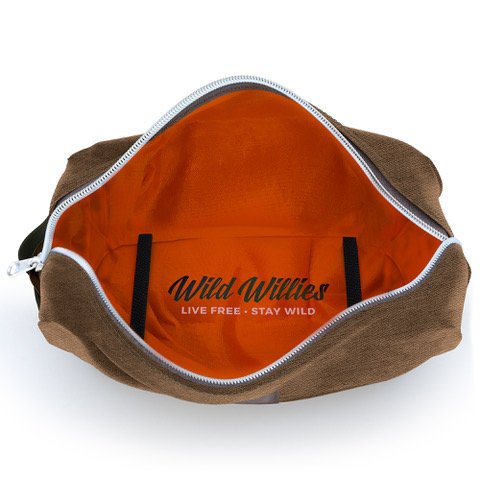 - Durable and Handsome travel Dopp Kitbag by Wild Willies. It is made of cotton, nylon lined interior, heavy duty zipper and very spacious. Store your toiletries with style.