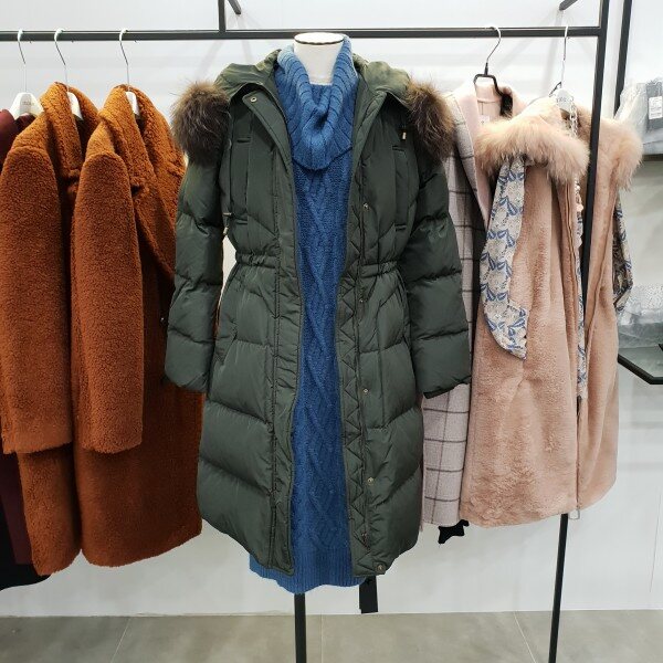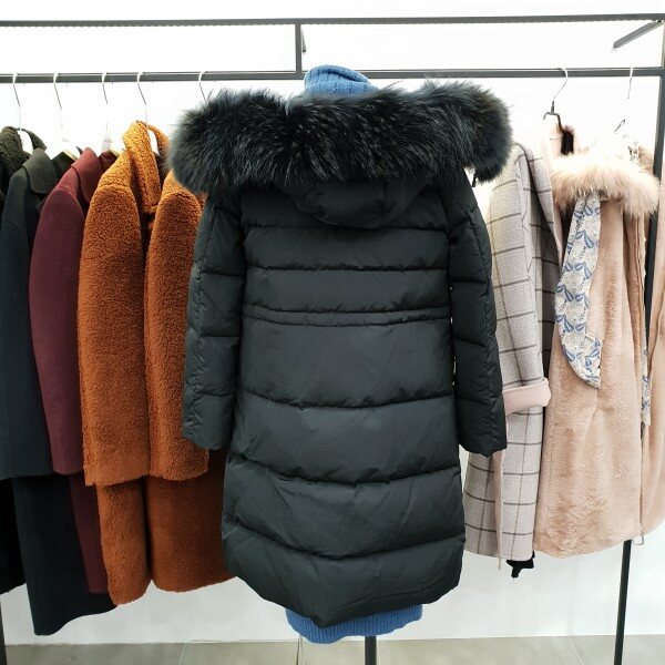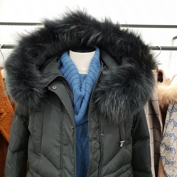 라쿤퍼가 풍성하게 트리밍되어 고급스러움을더해준 패딩점퍼
