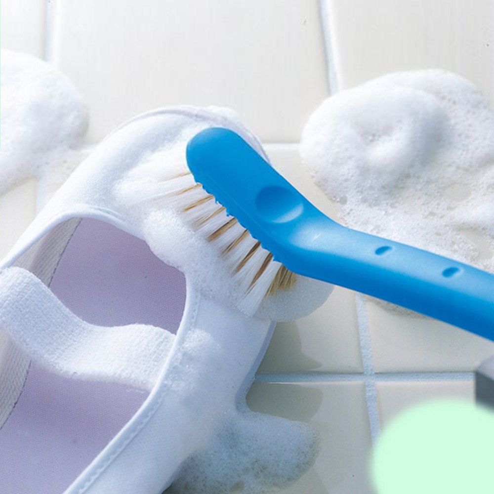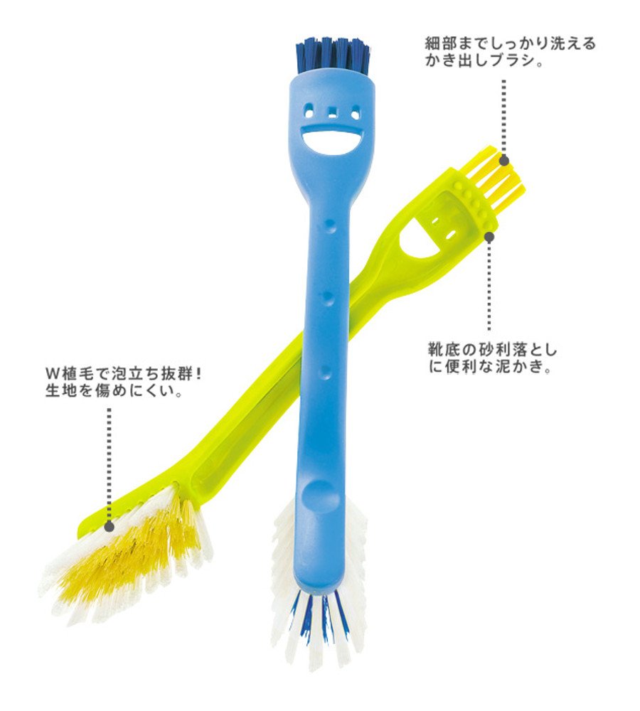 "Wanpaku shoes brush blue" is a shoe brush (for laundry) that is preeminent for foaming with W implanted hair, and is hard to damage the fabric.