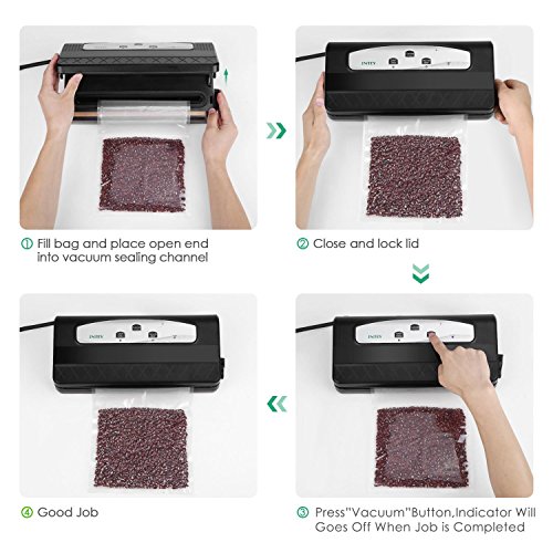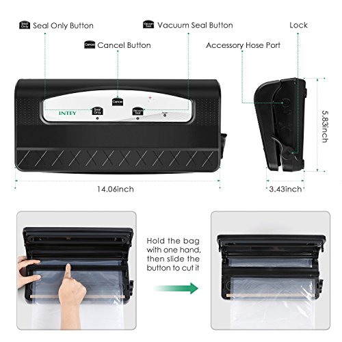 INTEY Vacuum Sealer Food Saver with Starter Kit, 4-in-1 Dry/Wet Vacuum Machine with Cutter, One-touch Vacuum Modes, Black