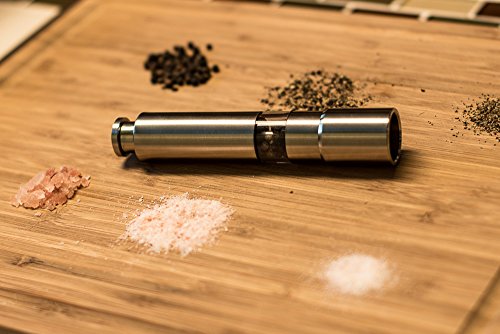 Salt and Pepper Grinder, Single Stainless Steel Manual Shaker Mill for Finely Ground Spices. From LyfeStyle Kitchenwares.
