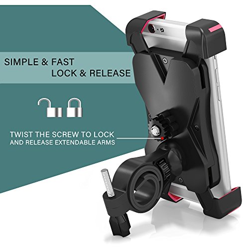 The upgraded design of the Artix bicycle mount makes use of a buckle structure instead of the strap and grip. This locks your device into place and as a result your device is much more secure. Never worry about your falling off during a bumpy ride! The stand is Anti-shake and anti-vibration even through the worst road conditions. Compatibility: Phone size: the holder is 4.5-7 inches length, 2.3-3.5 inches width and max 0.5 Inch thickness so it fits most devices from 3.5 to 7 diagonal inches on the market. Handlebar diameter: Product includes different thickness bands to ensure the mount could be installed onto different sized handlebars.Feature