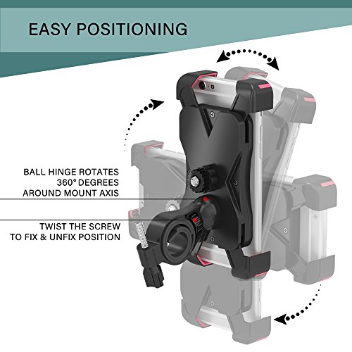 Durable & Secure: The clamp on the mount comes with four support corners to ensure your phone stays securely attached during your rugged and bumpy bicycle ride. Silicone inserts and back grip absorb shock to prevent shaking.