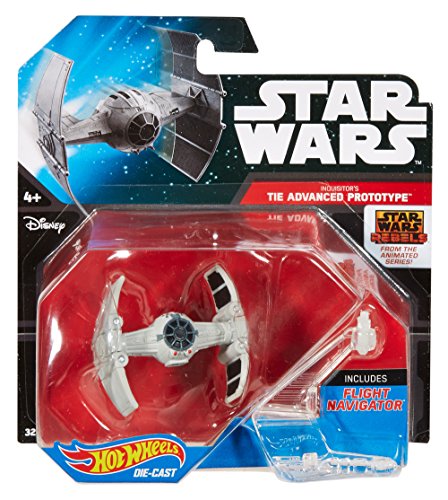 -. Binding : Toy -. Brand : Hot Wheels -. EAN : 0887961285192 -. Feature : Kids will love this iconic Star Wars starship / Flight Navigator empowers kids to "fly" their starship / Flight Navigator doubles as a display stand so kids can show off a collection / Collectible scale and authentic design / Makes a great gift for kids, collectors and Star Wars fans of all ages -. IsAdultProduct : 0 -. Label : Mattel -. Manufacturer : Mattel -. Model : DMP64 -. MPN : DMP64 -. PackageQuantity : 1 -. PartNumber : DMP64 -. ProductGroup : Toy -. ProductTypeName : TOYS_AND_GAMES -. Publisher : Mattel -. ReleaseDate : 2016-04-13 -. Studio : Mattel -. Title : Hot Wheels Star Wars Rebels Inquisitor's TIE Advanced Prototype Vehicle -. UPC : 887961285192 -. Warranty : 1 year warranty against manufacturer defects