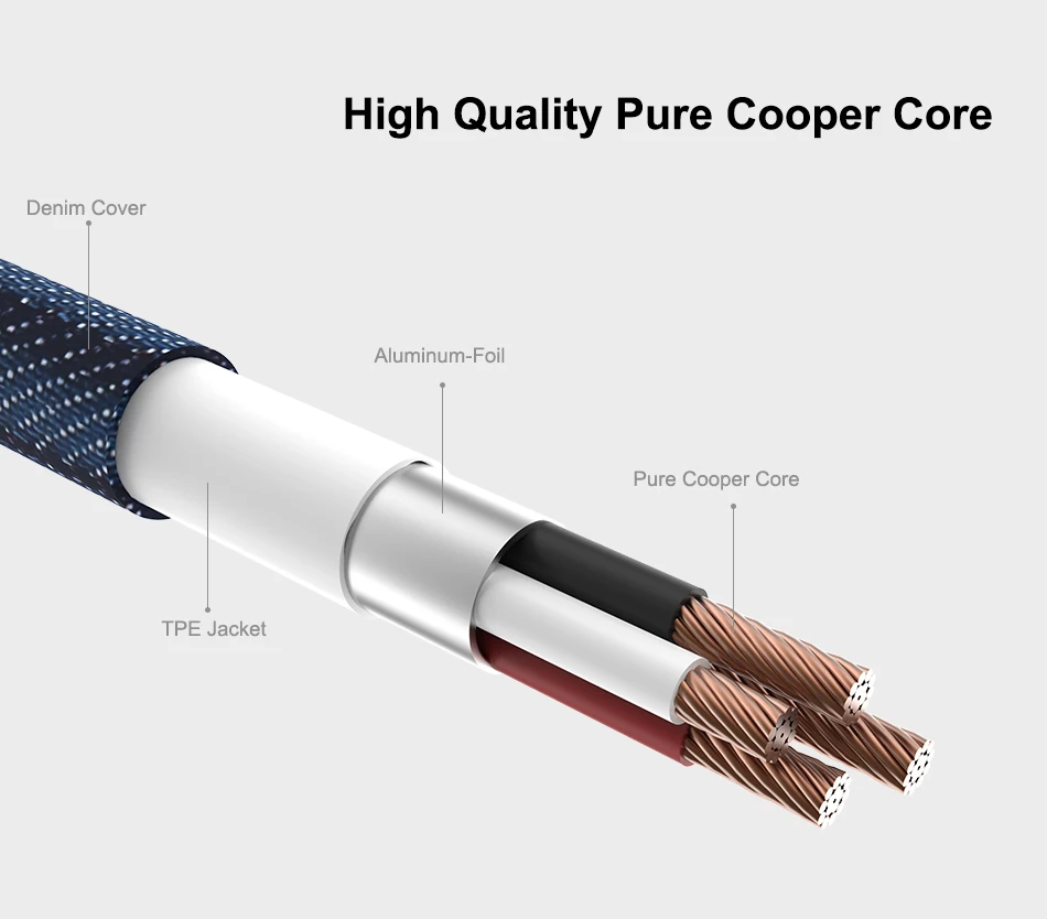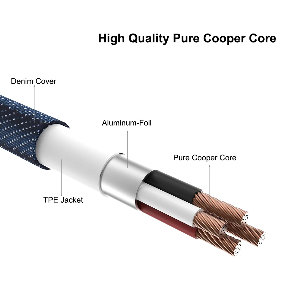 Material:Denim Braided+Aluminum Alloy+Pure Oxygen-free Copper