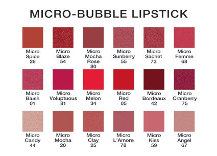 -. Feature : Rich, saturated creamy color that has feather resistant properties and protective treatment in one. / "Micro-bubbles" continually release conditioners that keep lips soft and color looking "just applied" for hours. / High pigment levels deposit rich, opaque color that lasts. / Glides on effortlessly for a flawless, lustrous brilliance. / Paraben Free, Fragrance Free and Hypoallergenic.