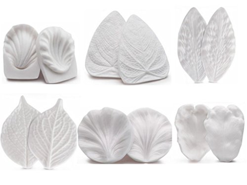 6 Sets Silicone Petal Veiner Leaf Mold, Various Flowers Pattern Fondant Mold Chocolate Gum Paste Cake Decorating Tools for Sugar Craft Candy Jelly Soap White