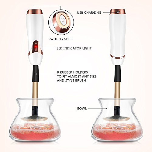 Makeup Brush Cleaner - USB Rechargeable, Electric Washer and Dryer Machine, Automatic and Portable, Fits All Sizes of Cosmetic Brushes, Works in...