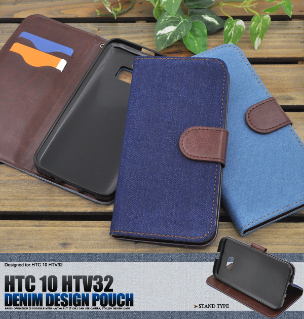 デニムデザインのHTC 10 HTV32用スタンドケースポーチ。
