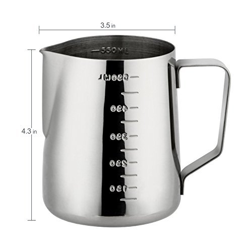 -. Title : JoyFork Professional Milk Frothing Pitchers, Stainless Steel Creamer Frothing Pitcher, Milk Frothing Cup With Measurement Marking, Milk Pitcher For Cappuccinos Milk Tea, Coffee Milk And Latte Art