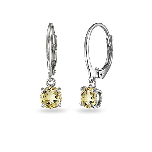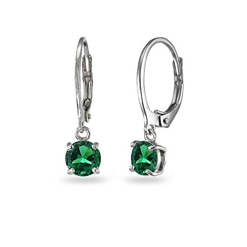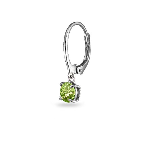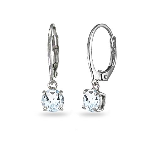 LOVVE Sterling Silver 6mm Round Small Dainty Dangle Leverback Earrings, Choice of 12 Birthstone Month Colors