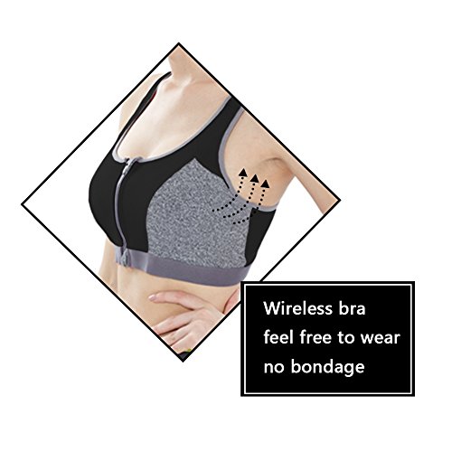 -. Feature : Front closure design, non-slip zipper make it no sliding and easy to wear, scratch-proof to avoid skin scratch / U neck design, wide strap to better reduce shoulder pressure / Inner front buckle bra to gather your chest and prevent moving / Made of professional sports material, comfortable, hygroscopic, breathable and wearable / Perfect for fitness, gym, yoga,running and other sports activities outfit