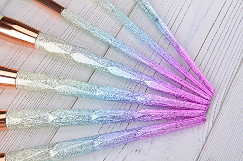 Lospu HY 7Pcs Diamond Shape Makeup Brush Set Dazzle Glitter Foundation Powder Makeup Brushes Rainbow Makeup Eyeshadow Blending Brush Kit
