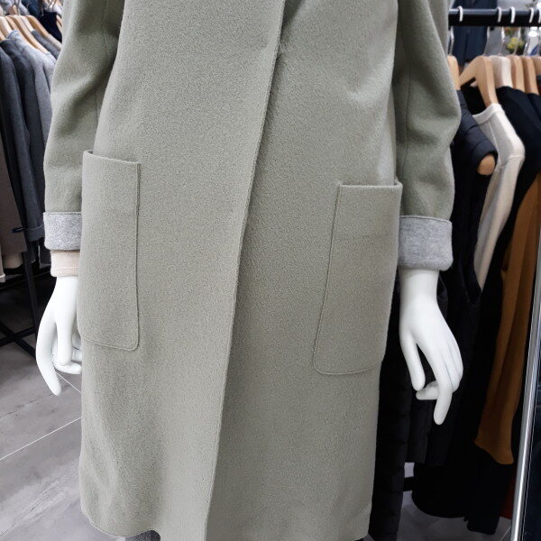 모 100%의 니트배색스탠카라 박스 코트 입니다 군더더기 없는 깔끔한 스타일로 멋스럽습니다