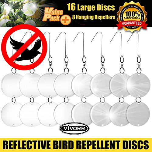-. Feature : ✔ PROTECT YOUR HOME SIDING & PROPERTY - Protects your garden, home, trees, plants, boats, crops, vegetables, patios, play areas, decking, car ports and more. Everywhere can be protected. These discs also make a nice decoration and protects from bird attacks. / ✔ NO MORE BIRD DAMAGE & MESS - Light reflections instantly scare off birds. It's a well known fact that birds don't like light reflections. Keep pest birds away like woodpeckers, pigeons, starlings, crows, blackbirds, seagulls, herons, ravens and many others. Customers like the fact that these are effective, simple and attractive. / ✔ EASY TO INSTALL - Simply hang over crops or the problem area, making sure the discs are in sunlight so they cause the reflections to scare away birds. A simple and effective permanent solution to getting rid of bird problems. More attractive than most conventional repellents and look great on your house or around the garden. / ✔ 100% HUMANE TO BIRDS - These repellent discs work by reflecting light. There are no chemicals on the surface and only natural sunlight is used to keep your home, garden and other areas free from bird damage, noise and mess. These discs do not cause harm to a bird in any way while repelling them. / ✔ 8 PIECE SET, 360° ROTATIONAL - Pack includes: 16 Reflective discs, 8x hook pieces, 8x 360° rotational pieces, 24x connecting rings to attach the discs together. Assembly Required. CUSTOMER SUPPORT AND PRODUCT GUARANTEE.