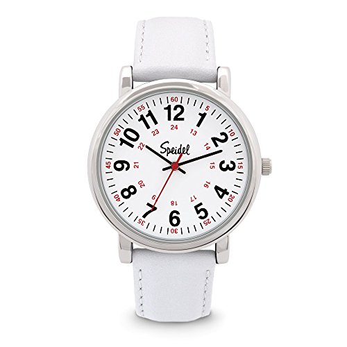 -. Binding : Watch -. Brand : Speidel -. Department : Unisex-adult -. EAN : 0079631313131 -. Feature : Easy-to-Read White Dial with 12 & 24 Hour Markers / 3-Hand Quartz Movement with Highly Visible Red Second Hand Makes Taking Accurate Pulse Readings a Breeze / Genuine White Leather Band / Available in Multiple Colors / Water Resistant Up To 30M(99ft) and 2 Year Limited Warranty -. Label : Speidel -. Manufacturer : Speidel -. MPN : 60340005 -. PackageQuantity : 1 -. PartNumber : 60340005 -. ProductGroup : Watch -. ProductTypeName : WATCH -. Publisher : Speidel -. Studio : Speidel -. Title : Speidel Scrub Watch for Medical Professionals with White Leather Band -. UPC : 079631313131