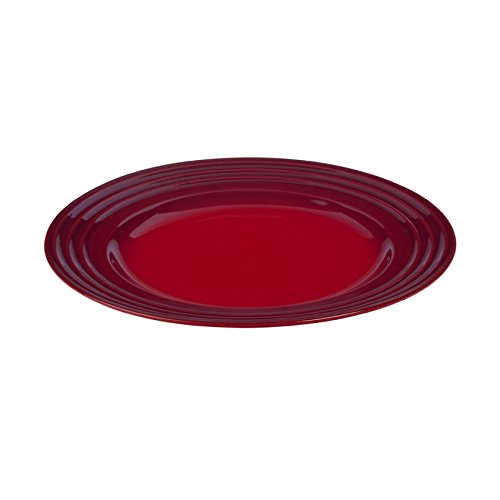 ReleaseDate : 2011-07-01 Studio : Le Creuset Publisher : Le Creuset Binding : Kitchen Product Description The stoneware dinner plate features a recessed base to contain liquids and a wide rim featuring Le Creuset’s signature raised rings. Each piece of Le Creuset dinnerware is crafted in the same careful process as all Le Creuset stoneware ? with a colorful, durable exterior enamel that matches other stoneware flawlessly while protecting from utensil marks and scratches. Every plate, bowl and mug is designed to complement any collection of stoneware, and is finished with Le Creuset’s signature three-ring accent along the exterior.