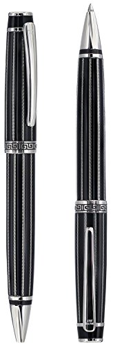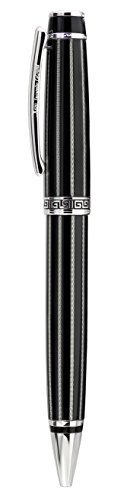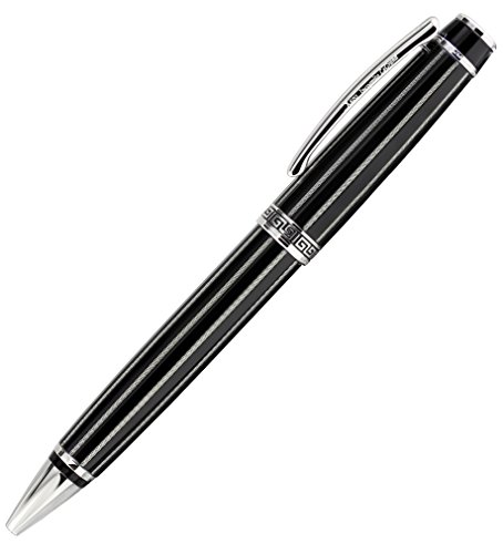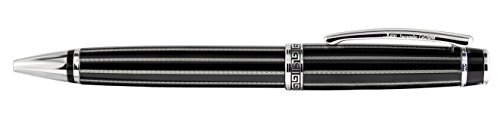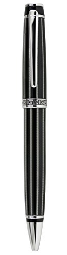 Weight-balanced black enameled luxury, twist action pen with platinum plating designed to reduce friction at the tip of this limited and serialized (250-piece series) pen