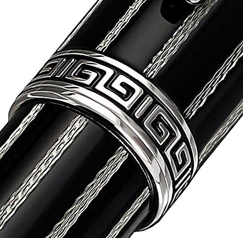 Hand-etched antique Greek key pattern adorns the band, and the cap features a hand-crafted curved clip, adds a sense of sophistication to the design