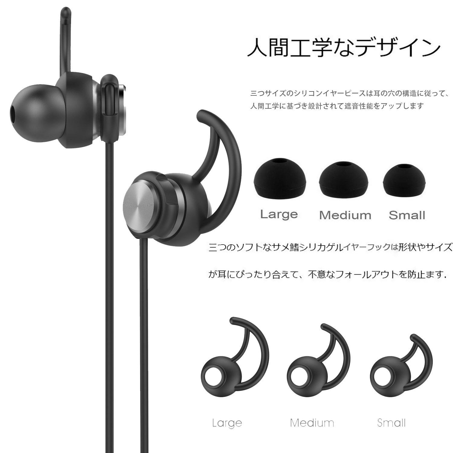 We have prepared three ear size exchanged ear caps and ear hooks together so that even those with smaller ears can use with confidence