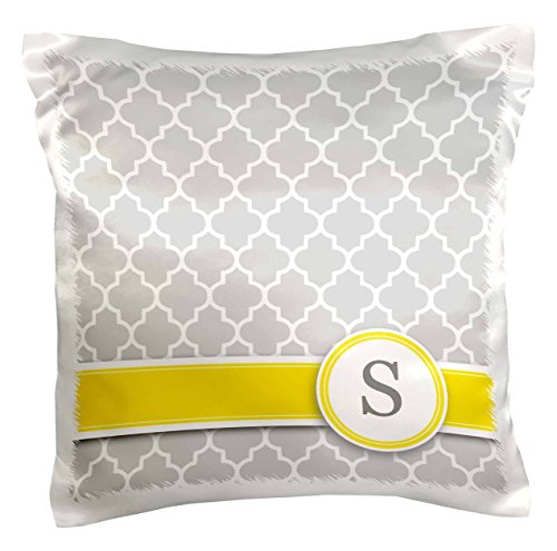 3dRose pc_154585_1 Your Personal Name Initial Letter S Monogrammed Grey Quatrefoil Pattern Personalized Yellow Gray Pillow Case, 16" x 16"