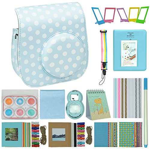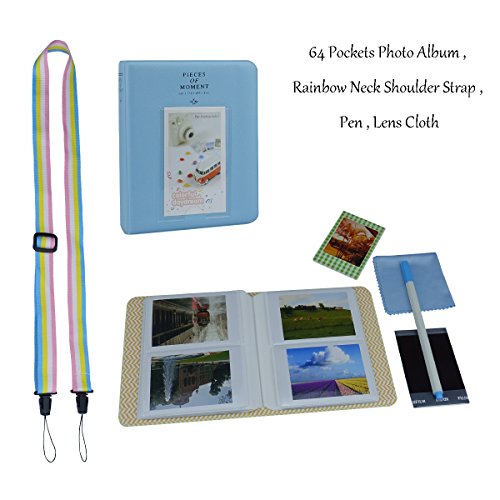 INSTAX ZUBEHOR - Die Goocor Instax Zubehor enthalten 1 x Goocor Mini 8 Kameratasche, 1 x Fotoalbum, 2 x hangende Bilderrahmen, 1 x Nahaufnahme Objektiv fur Selfie, 6 x bunte Filter, 1 x Tisch Bilderrahmen, 2 x Aufkleber fur Instax Mini 8 Film, 2 x Kamera Schulterriemen, 1x Farbstift ETC.