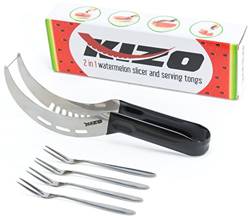 -. Title : Kizo High-Quality Stainless Steel Watermelon Slicer / Corer and Serving Tongs with Bonus- Set of 4 Fruit Forks