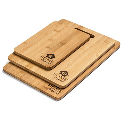 Home Organics 3-Piece, Non-Slip Premium Moso Bamboo Cutting Board Set, For Food Prep, Meat, Vegetables, Bread, Crackers & Cheese