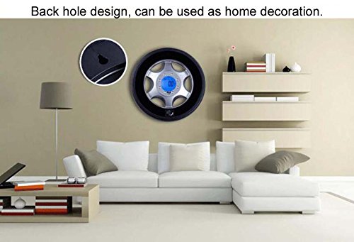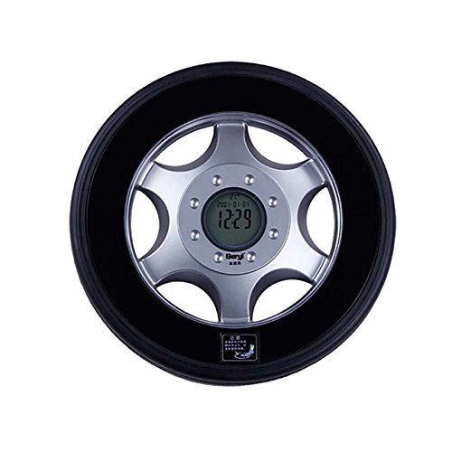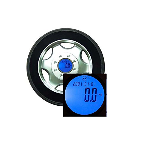 -. Feature : ACCURACY: Four sensors work together to ensure precise measurements within .2 lb, & up to 396 lbs. / CONVENIENCY:Easily switch conversion units from pound to kilogram or boulder according to your habit. / LARGE LCD DISPLAY:Easy to Read Backlit: It is large enough to accommodate,step on the auto-calibrated platform and receive accurate measurements / FUNCTION: With date, time and temperature display function / UNIQUE: Unique tire design,do the fashion style. Back hole design, can be used as home decoration.