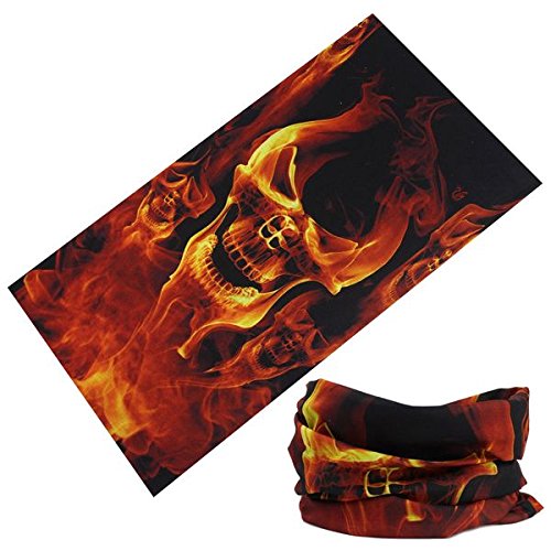HT-021 Fire Skull up in Orange Flames Design Protective Multi-use Seamless Breathable Neck and Head Tube Gaiter. Can Be Used As Neck Warmer, Headband, Bandana, Wristband, Balaclava, Headwrap. For Outdoor Activities Like Running Fishing Hunting Golf Campin