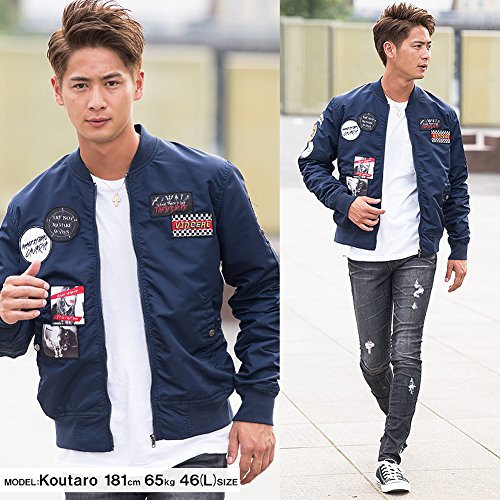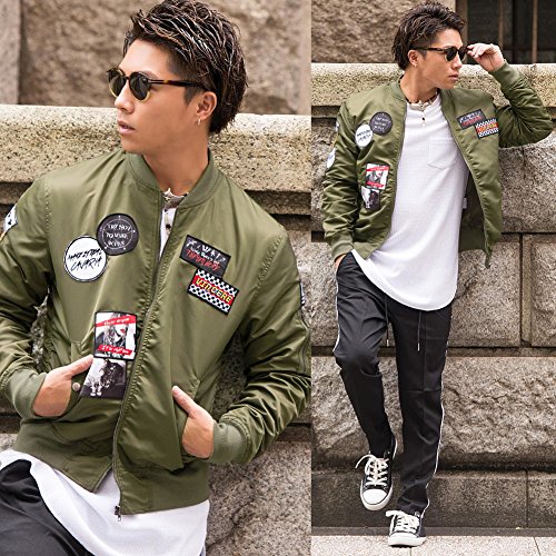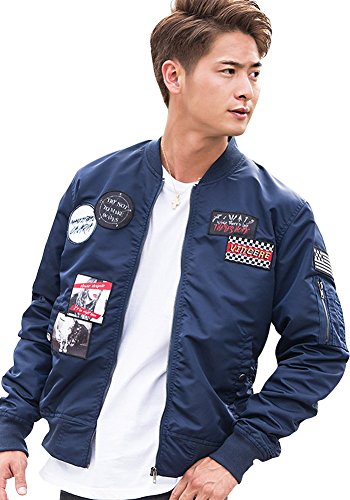 -. Title : (キャバリア)CavariA メンズ ワッペン MA-1 ボンバージャケット (トップス ブルゾン プリント)