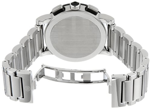 - Feature : Stainless steel watch featuring round black dial with signature silver-tone dot at 12 o'clock, Dauphine-shape hands, and link bracelet / Swiss quartz movement with analog display / Synthetic sapphire crystal dial window / Features deployant buckle closure, two subdials, outside minute track, and date window at 4 o'clock / Water resistant to 99 feet (30 M): withstands rain and splashes of water, but not showering or submersion