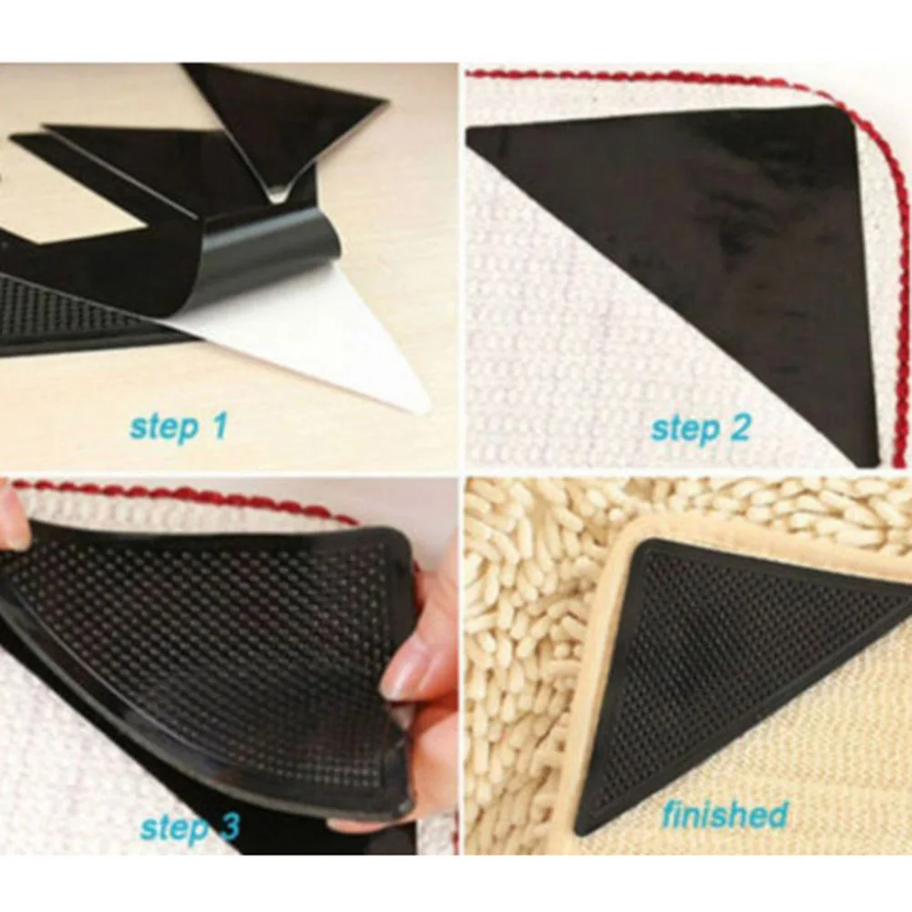 Very simple to use・ just take off the plastic and stick it to the edges of your rug