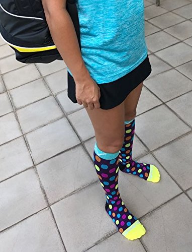 Why this is a great value buy? FREE BONUS E-BOOk! Our Compression Socks come with a free bonus e-book entitled "Let's Play Tennis!". It has 10 chapters of useful information on Tennis. Great for beginners or seasoned players looking to improve their tennis strokes. BETTER PERFORMANCE - Stimulates blood flow and improves oxygen delivery to your muscles. This equals faster recovery and better performance. REDUCES SWELLING - Reduces foot and leg swelling, lactic acid production and cramping. PREVENTS INJURIES - Relieves plantar fasciitis, shin splints, calf cramps, pulled muscles, achilles and heel cup issues, blisters, blood pooling. Lightly padded at the ball and on top of the foot to promote comfort and eliminate abrasion and foot stress. DRYNESS COMFORT - Special silver fibre gives optimum moisture control. Reduce growth of bacteria and fungus. Keeps your feet dry and comfortable (Dry feet = Less blisters). Also anti-odour anti-static. PERFECT FOR THESE ACTIVITIES - Running - Jogging - Walking - Soccer - Baseball - Football - Basketball - Cycling - Triathletes - Hiking - Crossfit - Field Sports - Stands long time at work (retail, nursing, travel, hospitality) - Traveling by plane / Long distance traveling / Wearing High Heel Shoes GUARANTEED - We are most confident that you'll love our compression socks. But if for whatever reason it just doesn't work as you'd hoped, we've got you covered with a hassle free LIFETIME GUARANTEE! Just send them back our way, and we'll gladly refund your money, no problem! GIVE IT A TRY! CLICK "ADD TO CART" BUTTON NOW AND FEEL THE DIFFERENCE!! (SPECIAL REMINDER: Please refer to the size chart to select the suitable size. The size chart can be found in the images of the listing. Scroll through the images and you'll find it!) 0 |