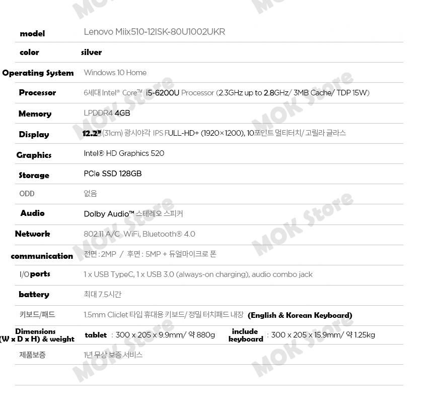 Lenovo MIIX510-I5 2in1 Notebook SSD128GB/4GB