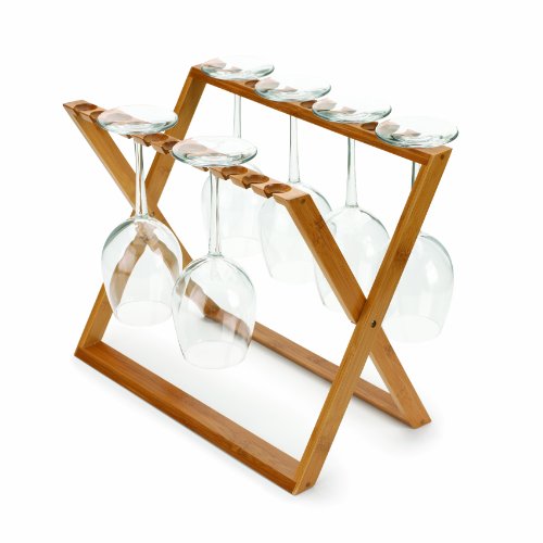 - Feature : Stemware drying rack for wine glasses and champagne flutes / Made of durable bamboo with a natural finish / Bamboo naturally resists splitting and mold and is a renewable resource / 14.5" x 8" x 11.5"; folds flat for storage / Design: Alan Wisniewski