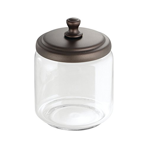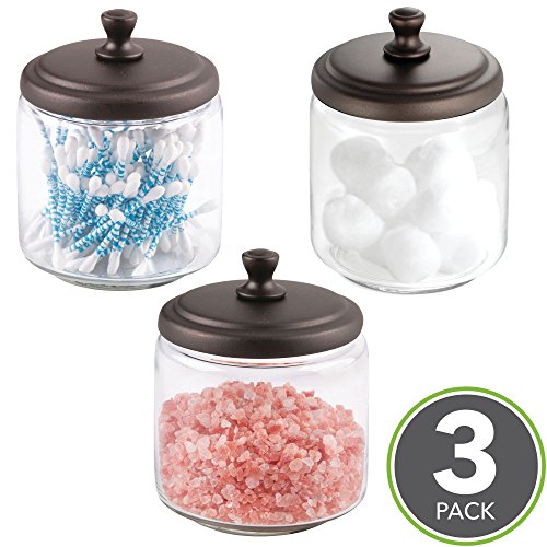 MetroDecor mDesign Cosmetic Vanity Glass Apothecary Jars for Makeup, Beauty Products, Lipstick, Q-tips, Cotton Balls, Makeup Wedges, Bath Salts - Pack of 3, Clear/Bronze
