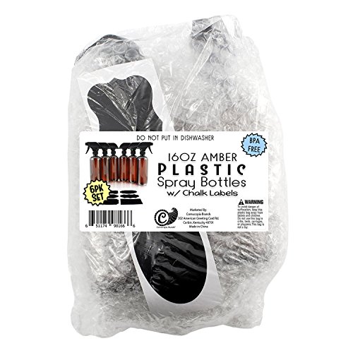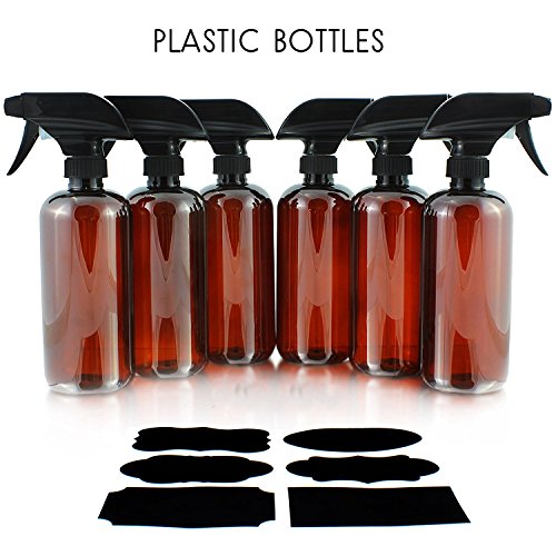 16oz Amber Brown PLASTIC Spray Bottles with Heavy Duty Mist & Stream Sprayers and Chalkboard Labels (6-pack); PET #1 BPA-free, Use for DIY...