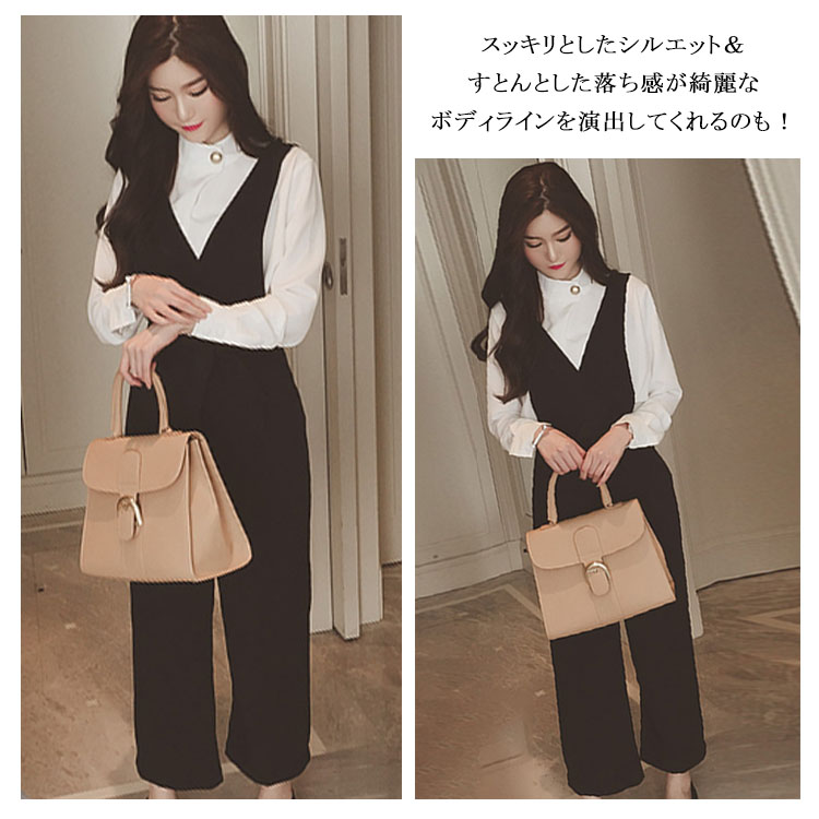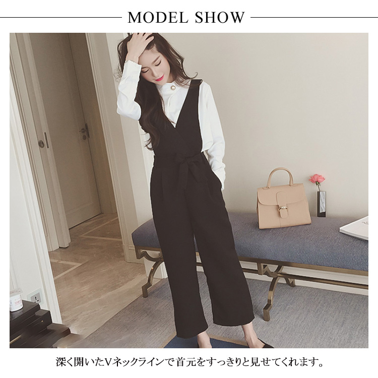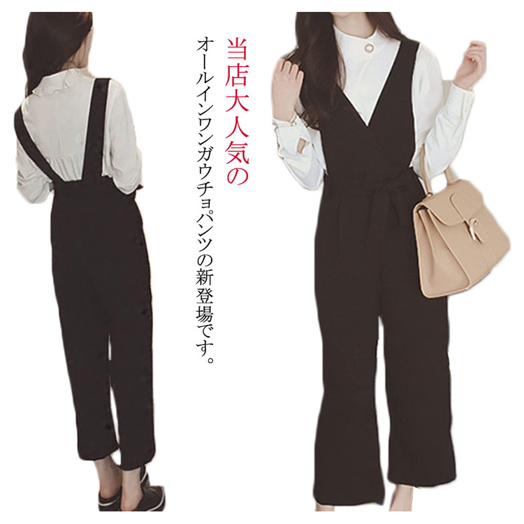 | 当店大人気のオールインワンガウチョパンツの新登場です。深く開いたVネックラインで首元をすっきりと見せてくれます。サイド側に隠れファスナーも付いて着脱ぎ便利な仕様になります。スッキリとしたシルエット&すとんとした落ち感が綺麗なボディラインを演出してくれるのも!お手持ちのトップスとも相性よく、ディリーに大活躍してくれること間違いなし。 | |