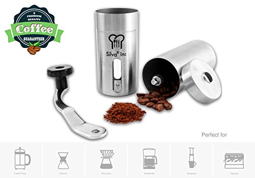 While the Silva Coffee Grinder is available for a fraction of the cost of the Hario & Capresso burr grinder and other grinders with fancy brand names, the quality of our coffee grinder meets the needs of the pros. That's why we offer a 30-day money-back guarantee on every burr coffee grinder that we sell. Enjoy the full flavor and aroma of delicious coffee right at home with the coffee grinder on Amazon that offers the best value for your money! CLICK "Add to Cart" Now to Start Benefiting from this Deluxe Ceramic Burr Grinder!Feature
