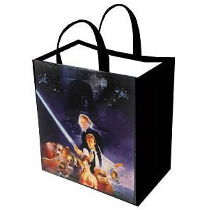 Star Wars Return of the Jedi Darth Vader, Leia and Luke with Light Saber Classic Black Reusable Tote 12 x 12 for Gift Bags, Grocery Shopping, Children's Party Favors and More!