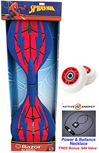 -. Title : SPIDERMAN Limited Edition Razor Ripster - Mini Pirpstik Castor Board with an Extra Set of Wheels & Active Energy Power & Balance Necklace $49 Value