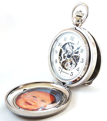 -. Title : Desperado "Seaside" Chrome Photo Insert Picture Frame Pocket Watch Built in Stand