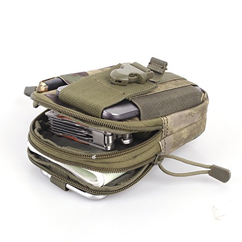 -. Feature : Dimensions: approx. 7.0 X 5.1 X 1.6 inches (L x W x T) / 2 zippered compartments: the front one with mesh layer, the back one with a nylon layer and a interior hook), exterior cellphone pocket (fits max size 6S Plus) with buckle strap closure, exterior pen sheath for rapid access. / EDC pouch has strong webbing belt loops on rear, deadly hard wearing & heavy duty.Its MOLLE system attachment straps are compatible with other tactical belts, tactical MOLLE vest, MOLLE tactical backpack, larger bags or medical bag. / This multi-function tactical MOLLE small bag can be used as a small EDC pouch, tactical pouch, ifak pouch, small tactical bag, military pouch, army pouch, gadget pouch, utility belt pouch, digital camera, smart phone (big size can hold iPhone 6S Plus), cigarette lighter, portable flashlight and GPS devise, gadget pouch, MOLLE waist pouch and keychain holder, etc. / Included 1 x Aluminum Alloy Carabiner